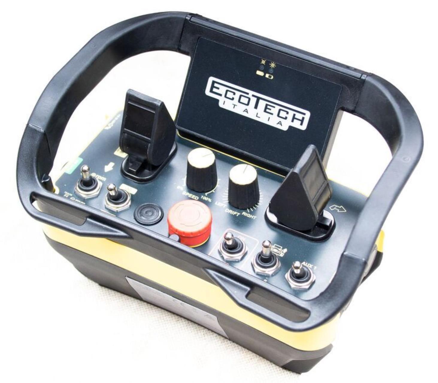 Die Fernbedienung ist ergonomisch und verfügt über einen praktischen und bequemen Tragegurt, der den Bediener komfortabel und ermüdungsfrei arbeiten lässt.